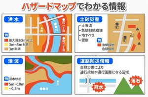 ハザードマップ(防災マップ)*地震や台風、大雨などの自然災害 が発生した際、その地域のどこに どん...