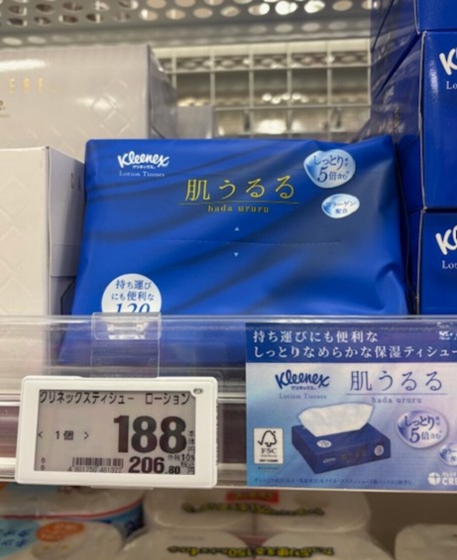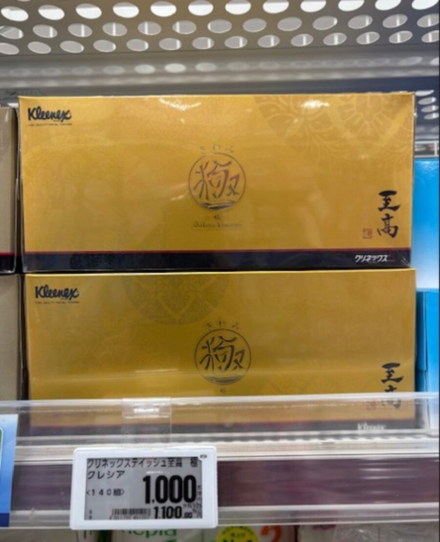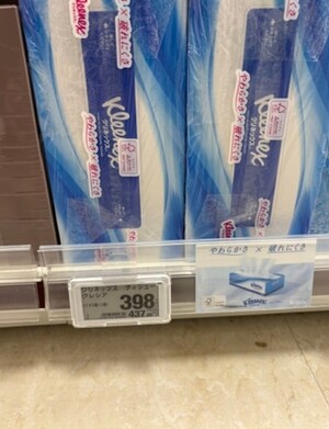 ティッシュが並んだ陳列棚を見ると